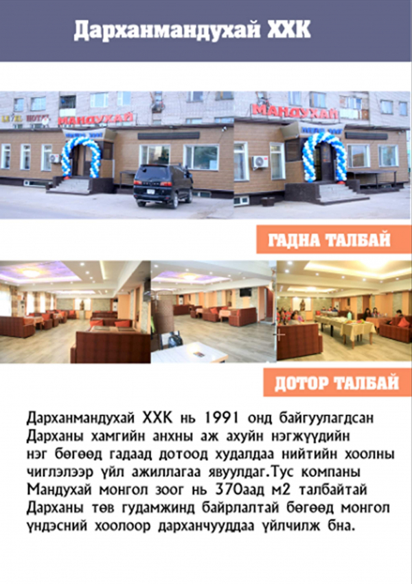 380 айлд байрлах Мандухай Монгол зоог зарна. подволын давхартай нийт 373 метр кв. Бэлэн бизнес дотор бүр юмтайгаа.